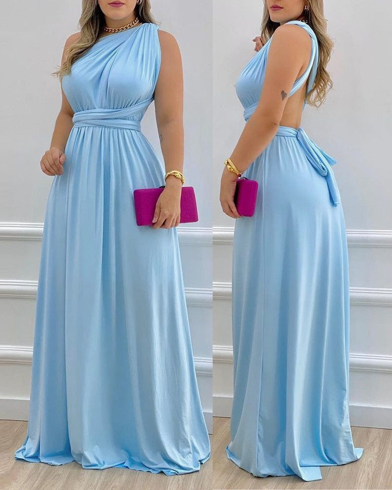 Commuter Sling Type High Waist Blue Official Picture Long Skirt Dress